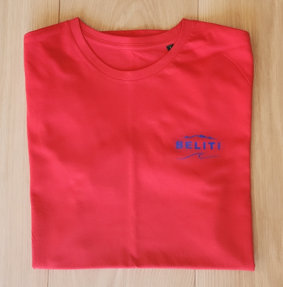 TEE SHIRT ROUGE LOGO BLEU